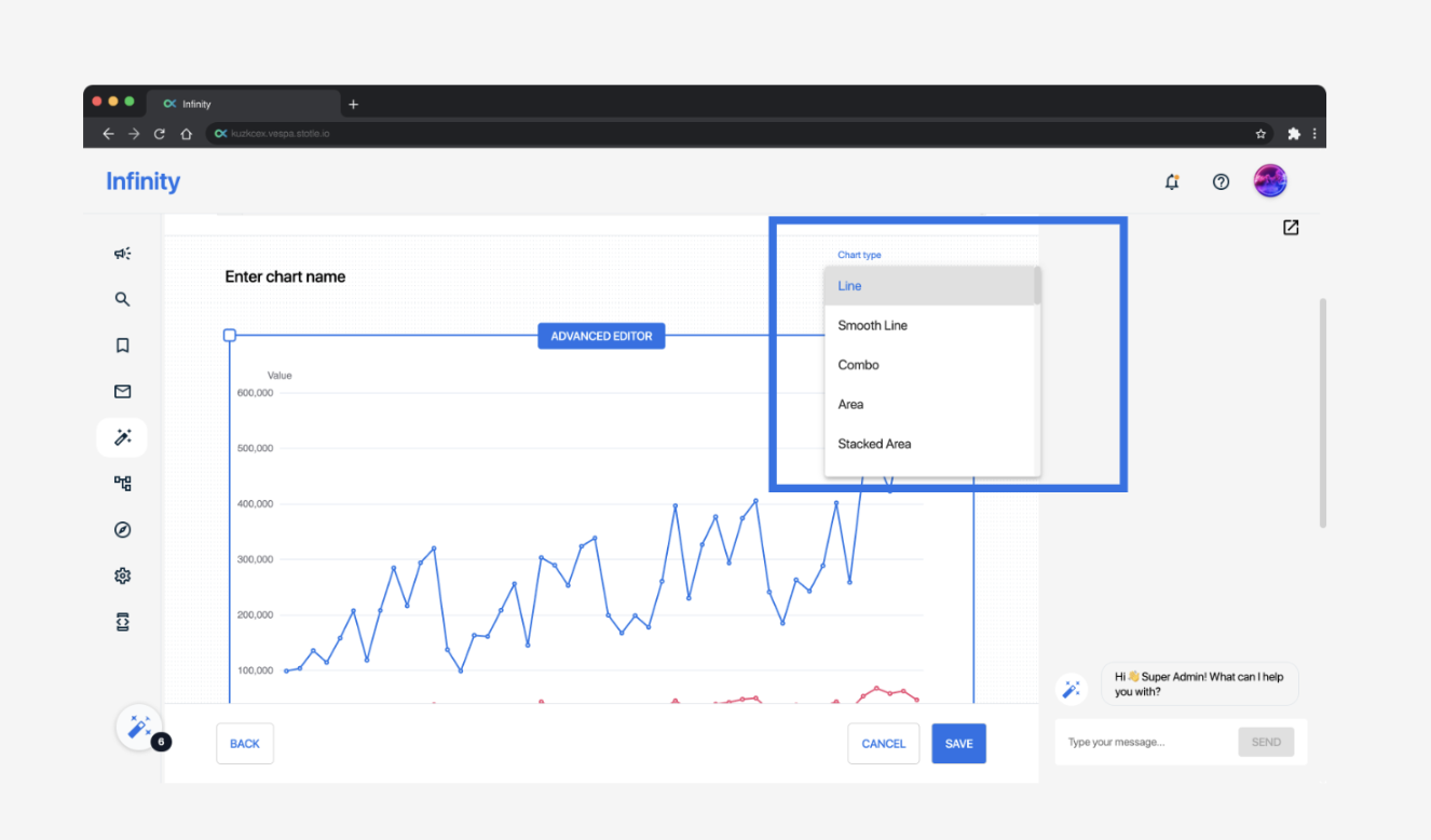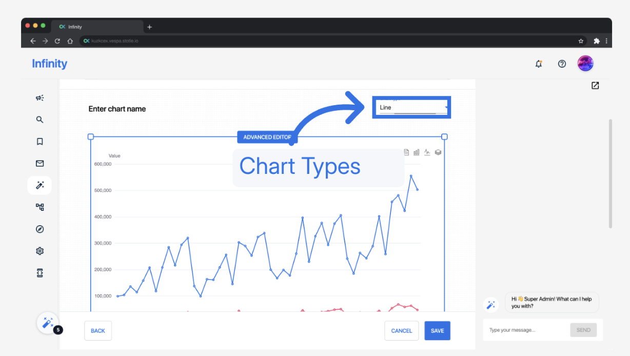 * The chart type can be changed using the **Chart Type Dropdown**, located at the top of the chart configuration page.