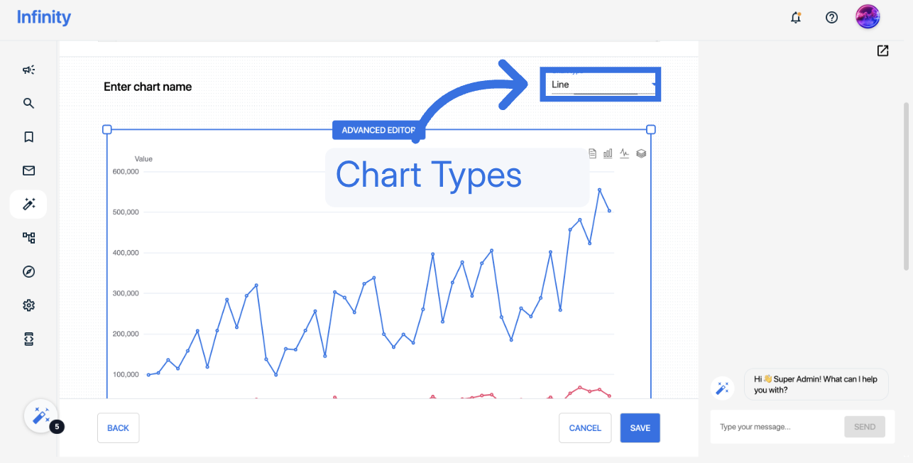 Infinity also provides an **AI-driven chatbot** that allows users to modify charts using simple commands.\ <br>