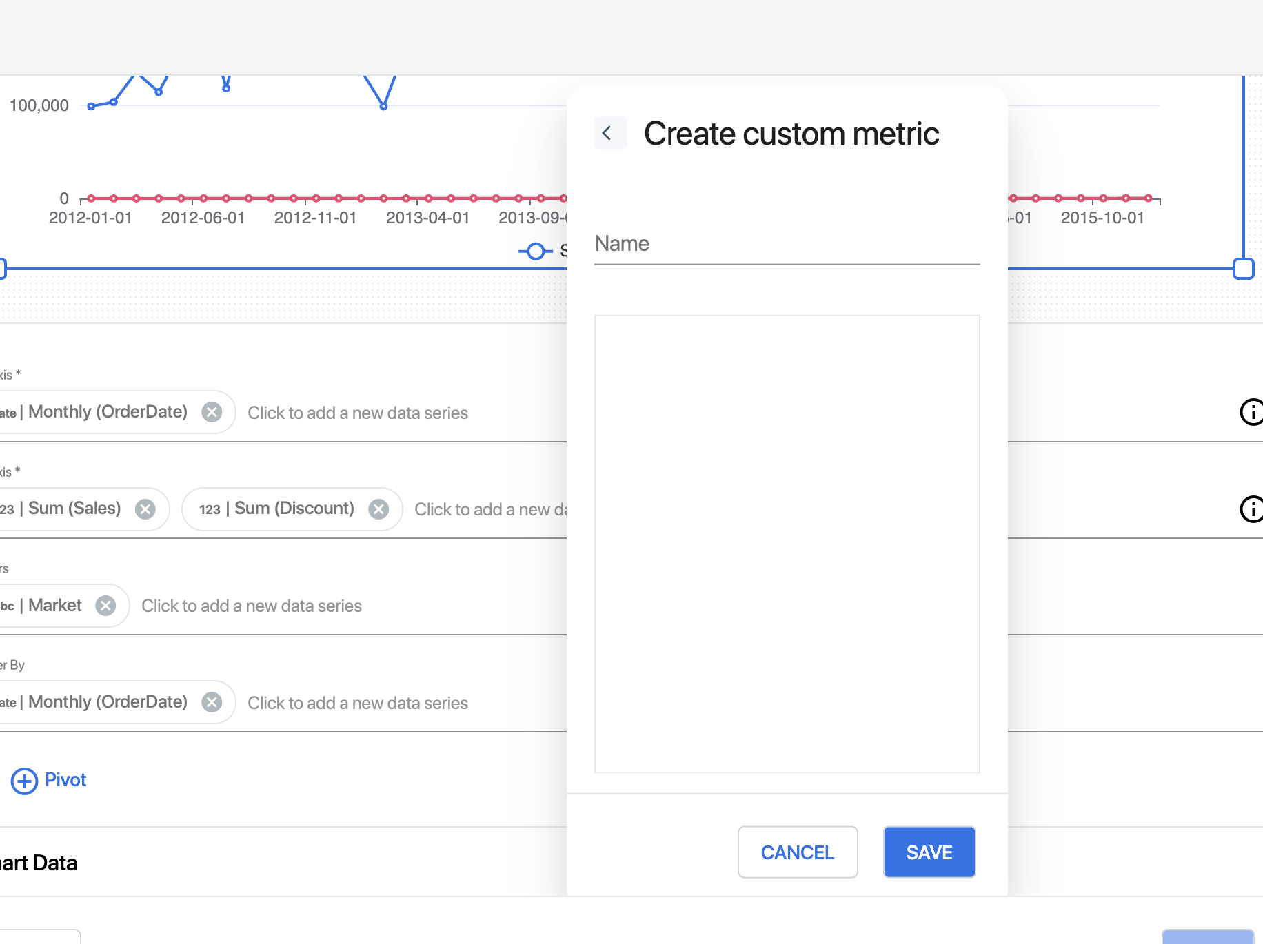 * Use the **custom metric** option to define a calculated field.
